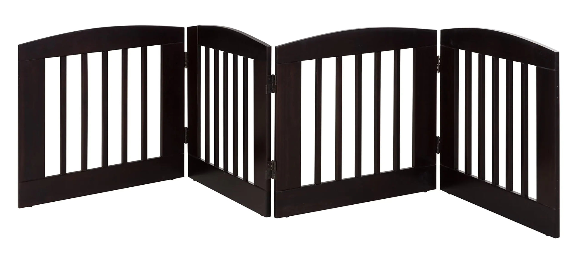 BarkWood Pets Freestanding Pet Gate with Four 24"W x 24"H Folding Wood Panels Cappuccino